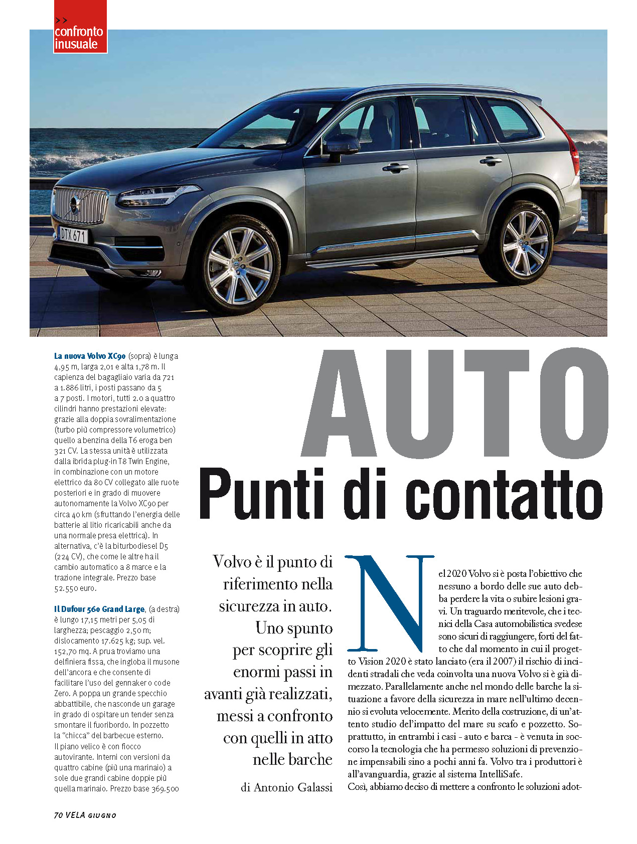 In questo insolito servizio analizziamo i punti di contatto in nome della sicurezza nei settori delle automobili e delle barche. Volvo è il punto di riferimento nella sicurezza in auto: abbiamo messo a confronto la nuova XC90 con… pensate un po’, un Dufour 560 Grand Large! Non storcete il naso, sarà un’occasione per scoprire gli enormi passi in avanti già realizzati!