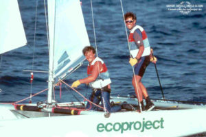 I ricordi personali ingombrano la mente. La sera di giugno dell’87 a Kiel nella hall dell ‘Olympia Hotel di Kiel, subito dopo la premiazione del mondiale gli occhi di Zuccoli e Santella erano gonfi di incredula felicità, camminavano senza sosta, il bianco dei loro sorrisi faceva davvero tenerezza. I primi ad essere increduli erano davvero loro, in un exploit di modestia davvero notevole. Di quel sorriso non v’era più traccia nel monumentale Marina di Pusan durante le olimpiadi del 1988 alla fine della quinta regata, quello del “tilt” nel lato di poppa, quando qualche fusibile saltò nel generatore di certezze che deve essere la mente di un velista che vuole vincere una medaglia olimpica. Da quella caduta, ricordo perfettamente le due facce sconvolte di Zuccoli e Santella nel tirare a terra il loro Tornado fradici di mar del Giappone, incupiti dal grigio del cielo coreano, è nata la magia che da uno splendido ma incapace di vincere equipaggio ne ha generati due, uno di Tornado, uno di FD, entrambi vincenti. Sulla carta però il divorzio post Pusan tra Zuccoli e Santella appariva tragico.
