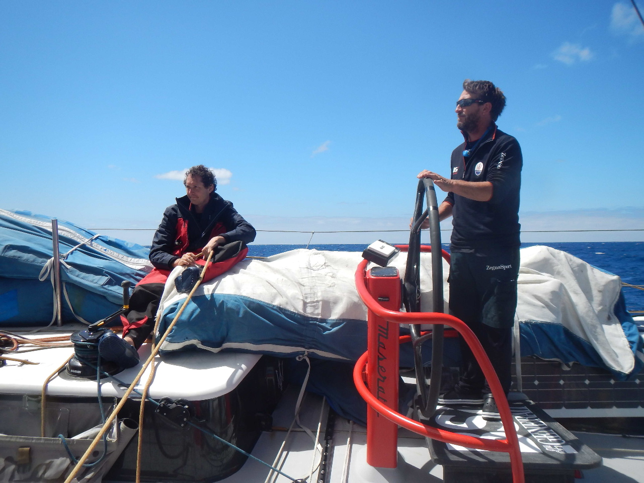 Molte persone. A volte la gente pensa che io sia un navigatore solitario e quindi…boh, niente, mi faccia tutto da solo. E invece no, manco per niente. Proprio perché sono un solitario che deve dare tutto il meglio di sé e usare tutte le proprie forze in regata, quando sto a terra devo spendere meno energie possibili e stare bello tranquillo, posato, cosa che poi non avviene mai perché è impossibile rilassarsi. Quindi non posso dimenticare quelle persone come Jones, Claudia, Elena della Comunità Saman di Latina dove abbiamo costruito la barca. I vari Stefan, Armando, Luigi, che hanno lavorato sulla mia barca e che ora con Luca, Giacomo, Noris e altri ragazzi stanno portando avanti proprio una bella storia, con il cantiere. Stanno costruendo un’altra barca, più grande della mia e sono contentissimo perché meritano proprio di lavorare. La mia è l’unica barca che non ha danni. Non è poco.