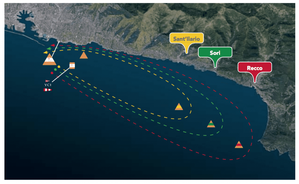 From the morning it is clear that it will be a Ligurian sirocco day, with a well-formed wave, and a few stormy variables to confuse the cards. As early as 20 minutes before the start, the wind has been blowing strongly around 15 knots, with gusts to 20, gradually but steadily increasing. We opt to start with full mainsail and jib 3, a choice that will prove suitable for the wind intensity we will encounter during the upwind.