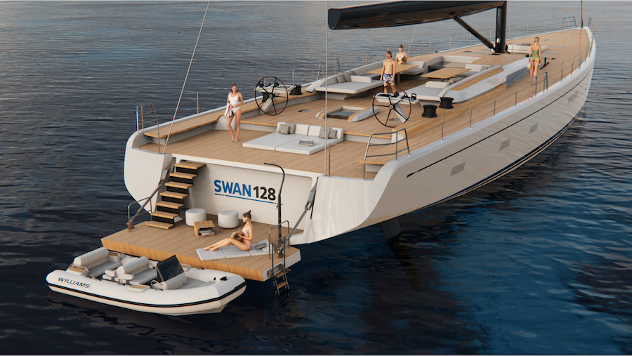 Presentato al Monaco Yacht Show, il nuovo Swan 128 (38,98 x 8,65 m) completerà verso l’alto la gamma dei maxiyacht di Nautor (che comprende già l’88, 98, 108 e 120).