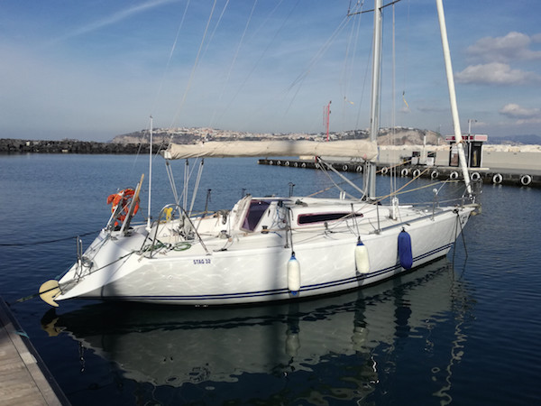 La quarta delle barche usate in vendita è un grande classico della nautica italiana. Armamento a sloop con fiocco a sette ottavi, sartie volanti, carena tonda dalle linee filanti, tuga bassa e rastremata, pozzetto ampio, manovre rinviate in pozzetto, lo Stag 32 (9,63 x 3,25 m) è un modello che sui campi di regata si è tolto le sue soddisfazioni. Progettato per correre nella V classe IOR da Luca Taddei, venne costruito al cantiere Mark III di Desenzano, sul Garda.