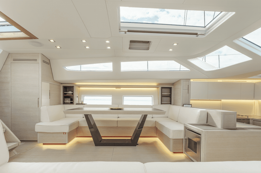 The hull and sail plan are the work of U.S.-based design firm Reichel-Pugh, famous for the balance of their boats under sail and top performance. The deck and interior design are the work of Milan-based archistars Nauta Yachts. The two bosses, Mario Pedol and Massimo Gino, have refined and evolved the design of the.