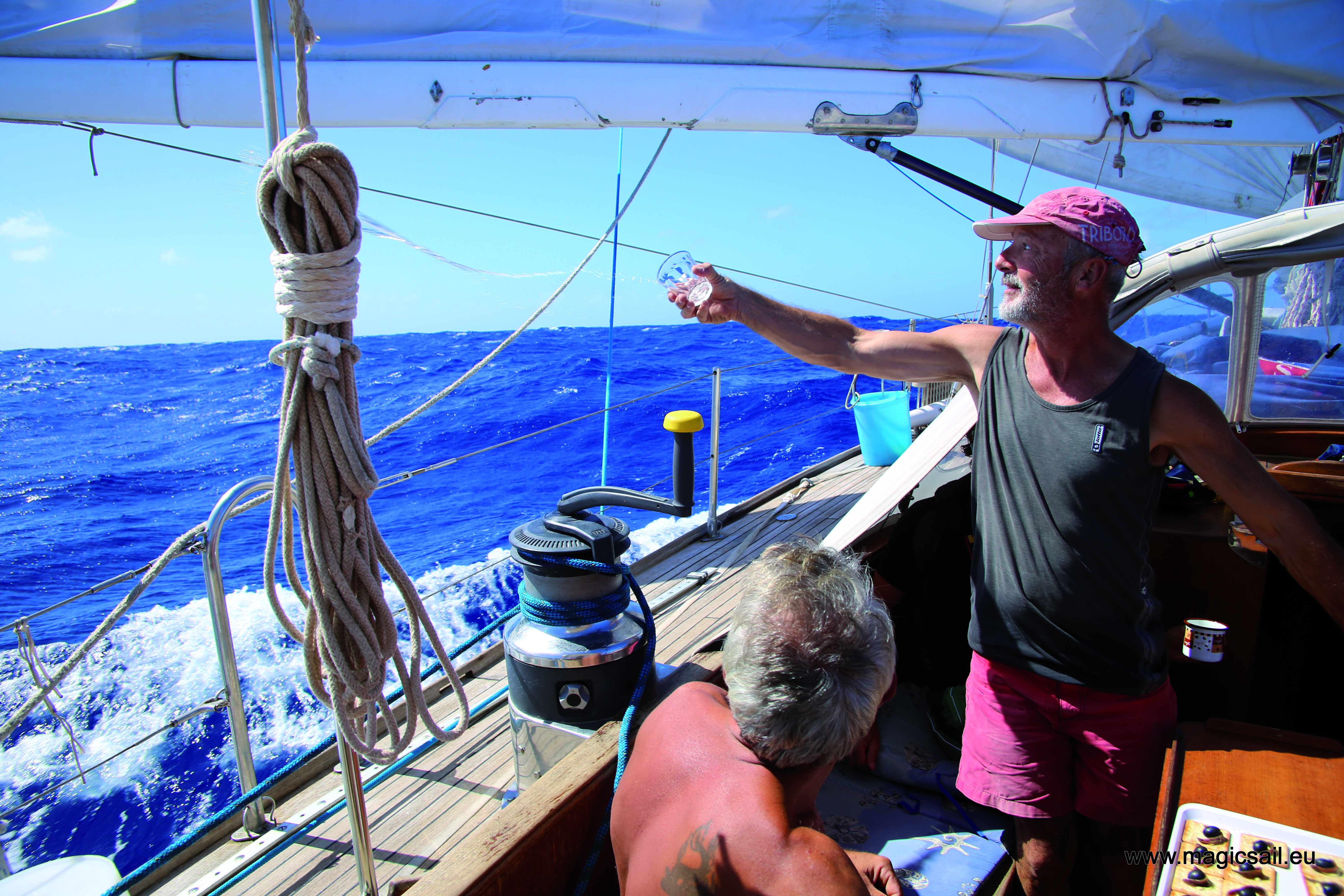 Also very pragmatic is the answer to the opposite question, “The happiest moment? Not only those on arrival after difficult crossings, such as the Indian Ocean crossing arriving at Richards Bay in South Africa, but also when guests confirm the cruise and we get a little bit of money…”