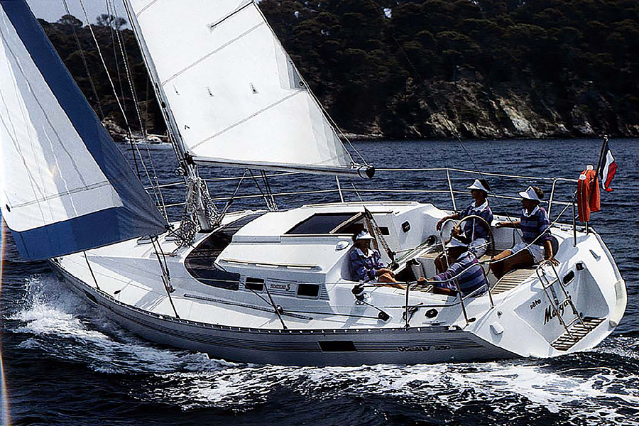 Behind this pure cruising boat, which has become iconic for its unconventional windowed deckhouse design, is a visionary designer, Philippe Briand. A 10-meter with extraordinary production longevity, from 1986 to 1993. Revolutionary design.