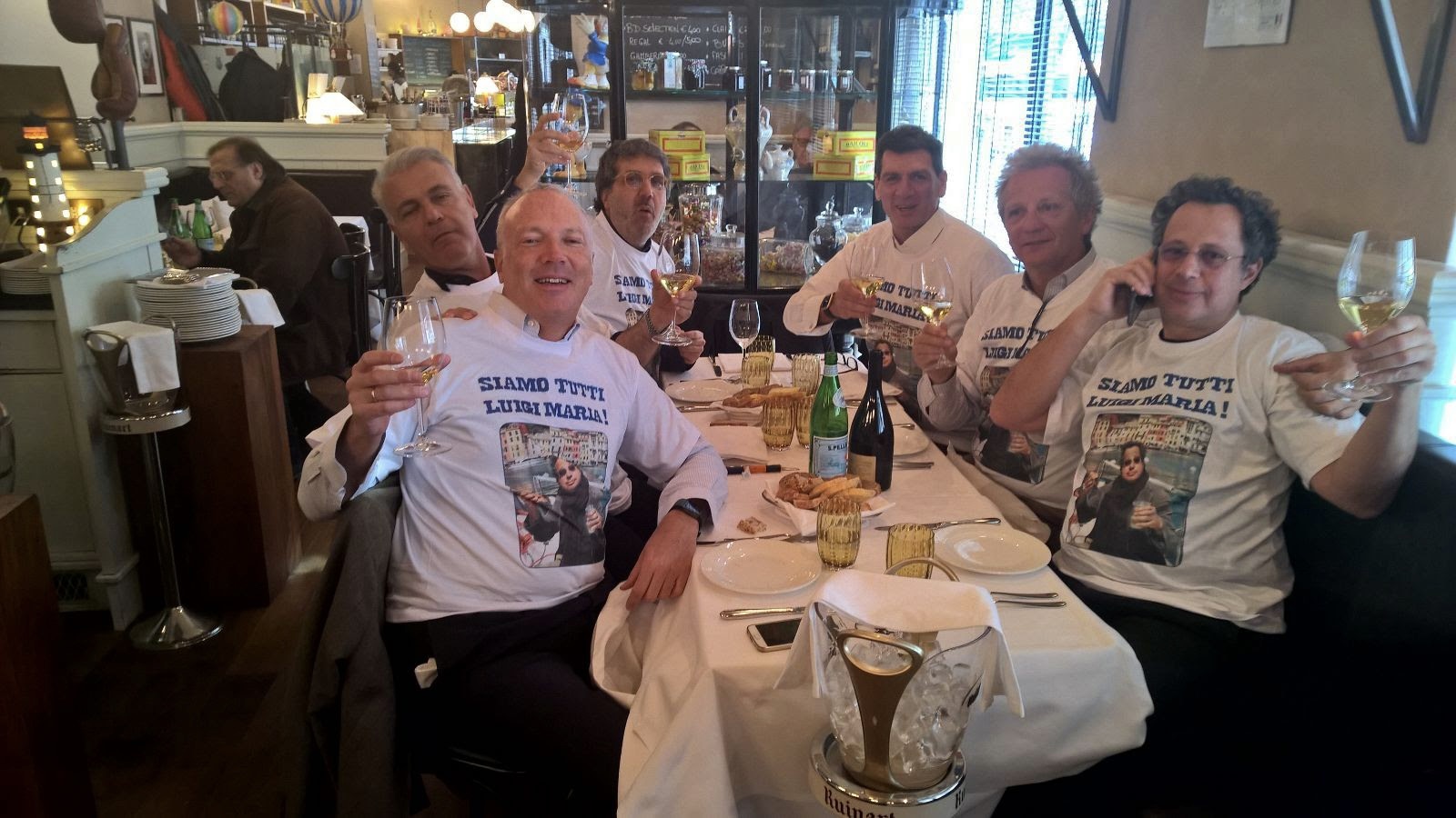 This above is the souvenir photo… I can’t find the buyer or the consultant but all my friends at the table with my big face T-shirt and the words “We are all Luigi Maria.”