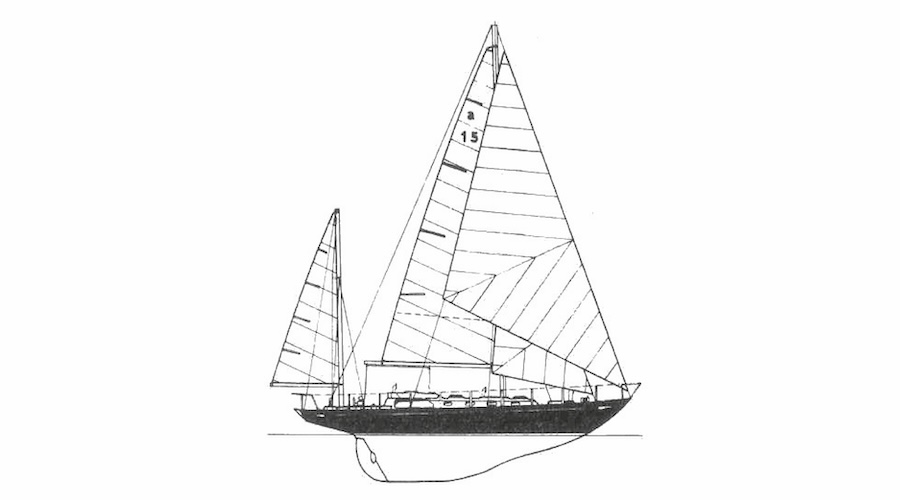 L’Alpa A15, dall’altra parte, è uno scafo che vuole invece offrire di più, nascendo come Ocean Racer e, soprattutto, come il più grande scafo in VTR d’europa. È una barca “da signori” (ne verranno prodotte ben 6). Chiglia lunga, scafo stellato, armo a Yawl (con la mezzana retrostante l’asse del timone) e slanci più importanti (14.7 m LOA x 10 m LWL), ne fanno un progetto marina e di fascino per il suo tempo. Sottocoperta, oltre all’immancabile (per allora) cabina del marinaio prodiera, offre una seconda cabina doppia privata e altri 3 posti a dormire in dinette, altrimenti adibita a salottino. Non mancano l’inevitabile cucina, carteggio e toilette. I due scafi compongono la prima produzione matura e faranno da trampolino di lancio per la più ingente produzione di fine decennio.
