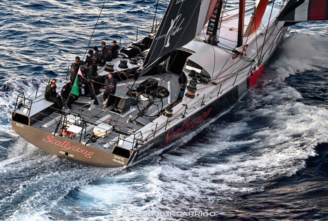 The owner of the boat, which flies the Hong Kong flag, is Seng Huang Lee. It is a Dovell 100, designed by Andrew Dovell, formerly Ragamuffin 100. The construction, in carbon, is by Cookson, and the boat was launched in 2005. The current owner has owned her since 2016. Aboard Scallywag have raced David Witt (skipper), Alex Higby, Andrew Hay, Ben Piggott, Bram van Spengen, Craig Garnett, David Mann, Dominic Davies, Francis O’Leary, George Richardson, James Crampton, Juan Vila, Logan Radford, Matt Stenta, Nicholas Crones, Pete Cumming, Phil Harmer, Ryan Ewings, Trystan Seal.
