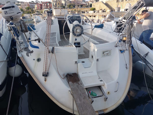 The model that took the place of the old 36 features a cockpit with an “old-fashioned” center rudder, with an opening on the transom to access the recessed aft platform. The boom is short, so the cockpit is free of the mainsail key, carried back to the deckhouse. The lines of the boat, all in all, are sleek. The boat’s sail area of 63.40 sq. m. pairs with a displacement of 5,360 kg (including 1,780 as ballast). The model for sale, which can be seen in Naples, is in the owner’s version with two double cabins fore and aft, a large bathroom, saloon with galley. The boat has had one owner since 2000 and is equipped with mainsail and furling genoa.