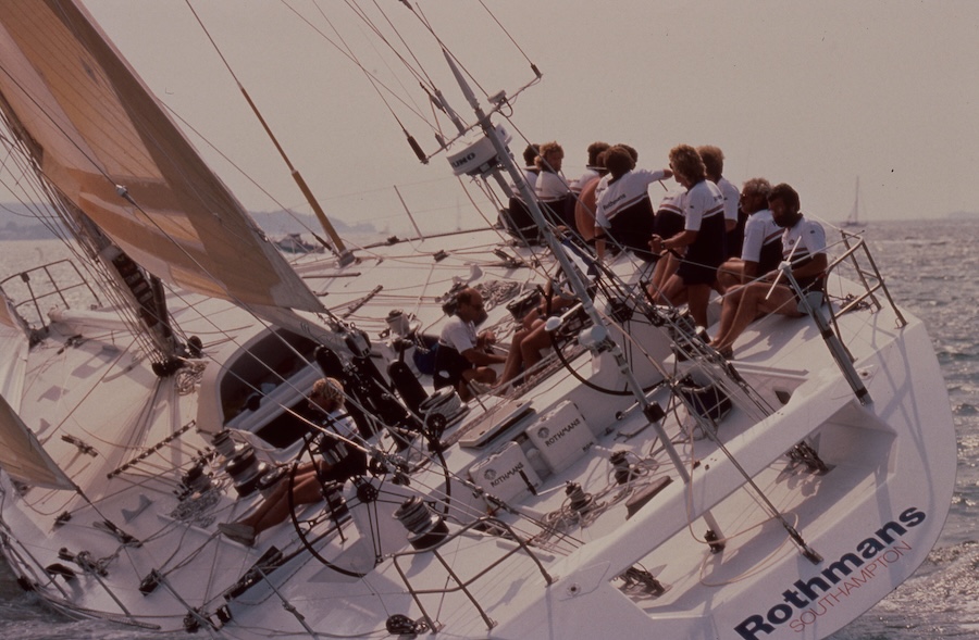 Nel 1973 Royal Huisman vara il Benbow, progettato da Dick Carter (QUI la sua storia come progettista). È uno scafo notevole, è veloce e, sebbene proiettato anche verso la crociera, è forte di linee e novità non da poco. Vincerà tre volte la Middle Sea Race e sarà detentore del record in Giraglia dal 1984 al 1998. Ma perché è interessante in questo contesto? Chiaramente perché Carte qui, tra i primi, introduce la doppia ruota. Il vantaggio che comporta è semplice: spazi più agevoli e migliore visibilità in timoneria, evitando la ruota enorme. Prima di vedere la stessa soluzione in vasta serie, però, bisognerà aspettare German Frers ed il 1987.