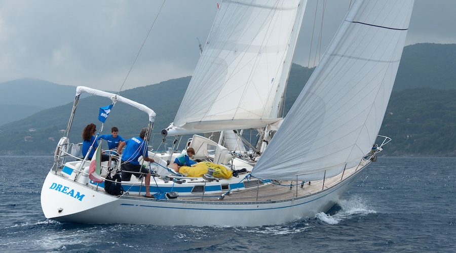 Torniamo al Dream. Varato nel 1975, nel 2000 è acquistato da Francesco Persio, che lascia così il suo Camper & Nicholson per passare ad uno scafo più grande, una barca capace di accogliere i nuovi bisogni ed i volumi che una famiglia può comportare/necessitare. In poche parole, spazi nuovi, abitabilità maggiorata e, sopra tutto, emergerà, molto più passo, ergo più miglia quotidiane. Inevitabilmente, il Mediterraneo torna ad essere l’oggetto delle esplorazioni. Ma ora si può fare molto di più.