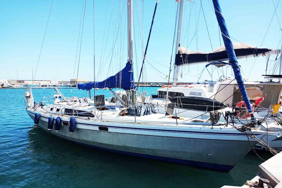 With as many as 55 examples produced in just four years, the Moody 54 is a bluewater whose numbers already tell a lot about her. A central and well-protected cockpit, a glazed deckhouse to illuminate the interior, and generous volumes alone make this a pleasant hull to say the least. Add to that Bill Dixon’s hull and you’re done. A generous hull, to say the least, for long cruising, all the time.