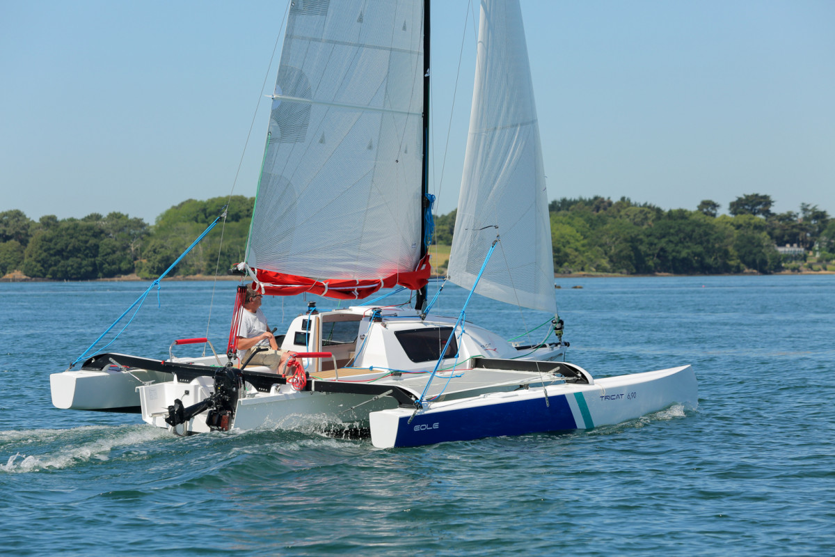 The sail plan includes a square-top mainsail and a low-overlap jib that is easy to maneuver in the turns, the TriCat 690 also has side drifts with drafts from 0.28 cm to 1.20 m. In the stern, the maximum gennaker area provided is 34 sq. m.