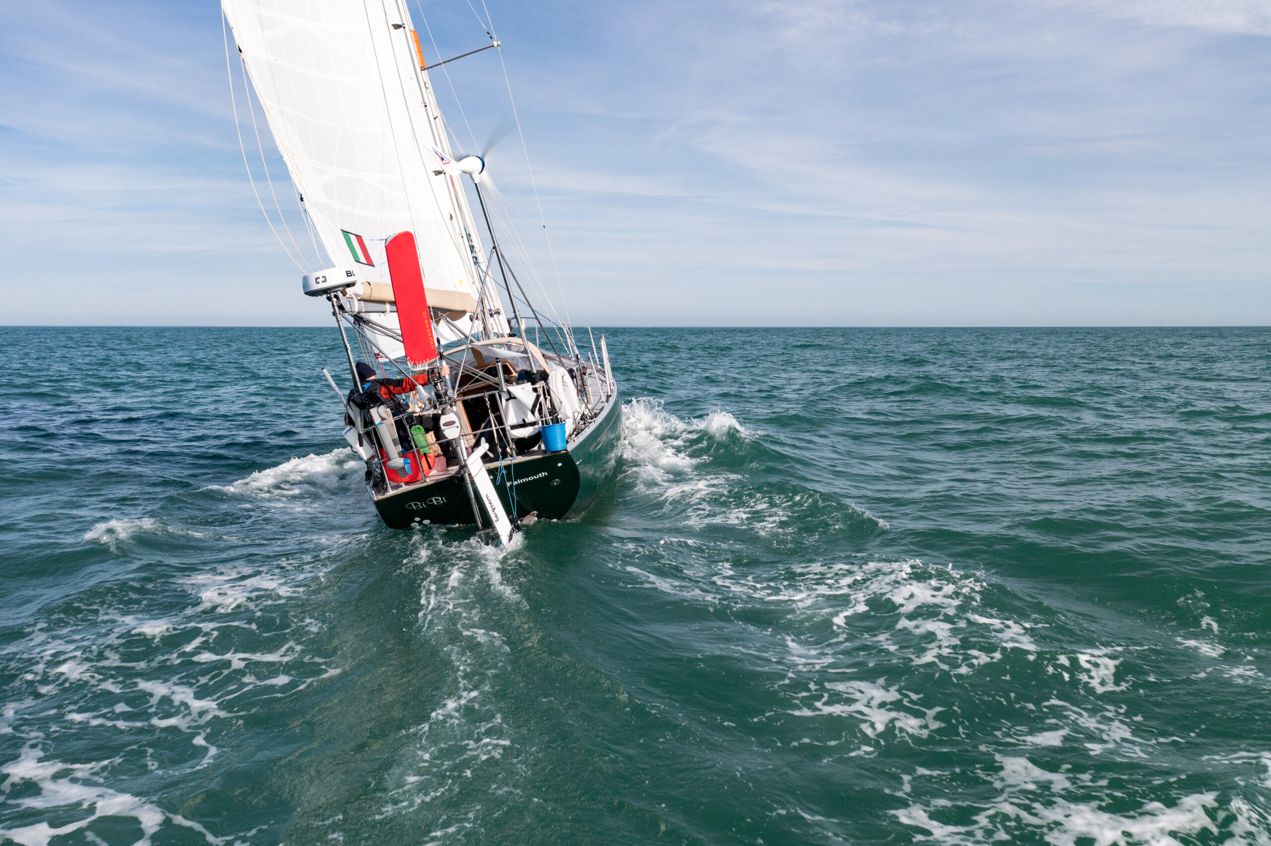 Andrea Lodolo, pictured below aboard his boat BIBI, a solo sailor, from his three-year cadet-ship training at Warshaw Maritime Academy and work on British merchant navy ships, has devised the Yacht Safety Management System or YSMS, which implements a safety protocol for recreational sailing inspired by the “ISM Code” standard mandatory on all ships over 500GT internationally. He is one of the participants in the Golden Globe Race 2026.
