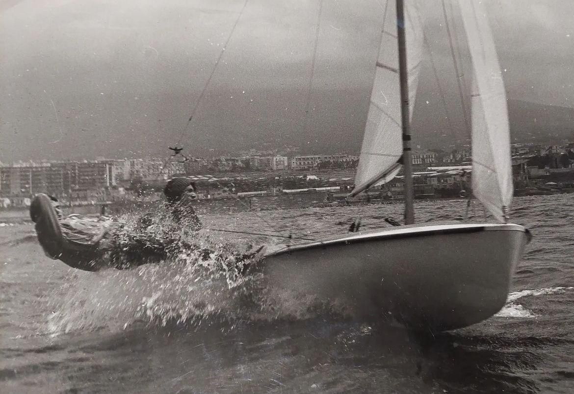 Andrea Zorloni posta il suo scatto vintage con una nostalgica planata in Flying Dutchmann, mentre Peppe Caiazzo qui sotto condivide con noi una splendida immagine dalla didascalia “Classe 420, uscita con libeccio 18 nodi. Sotto il vesuvio. 1980”.
