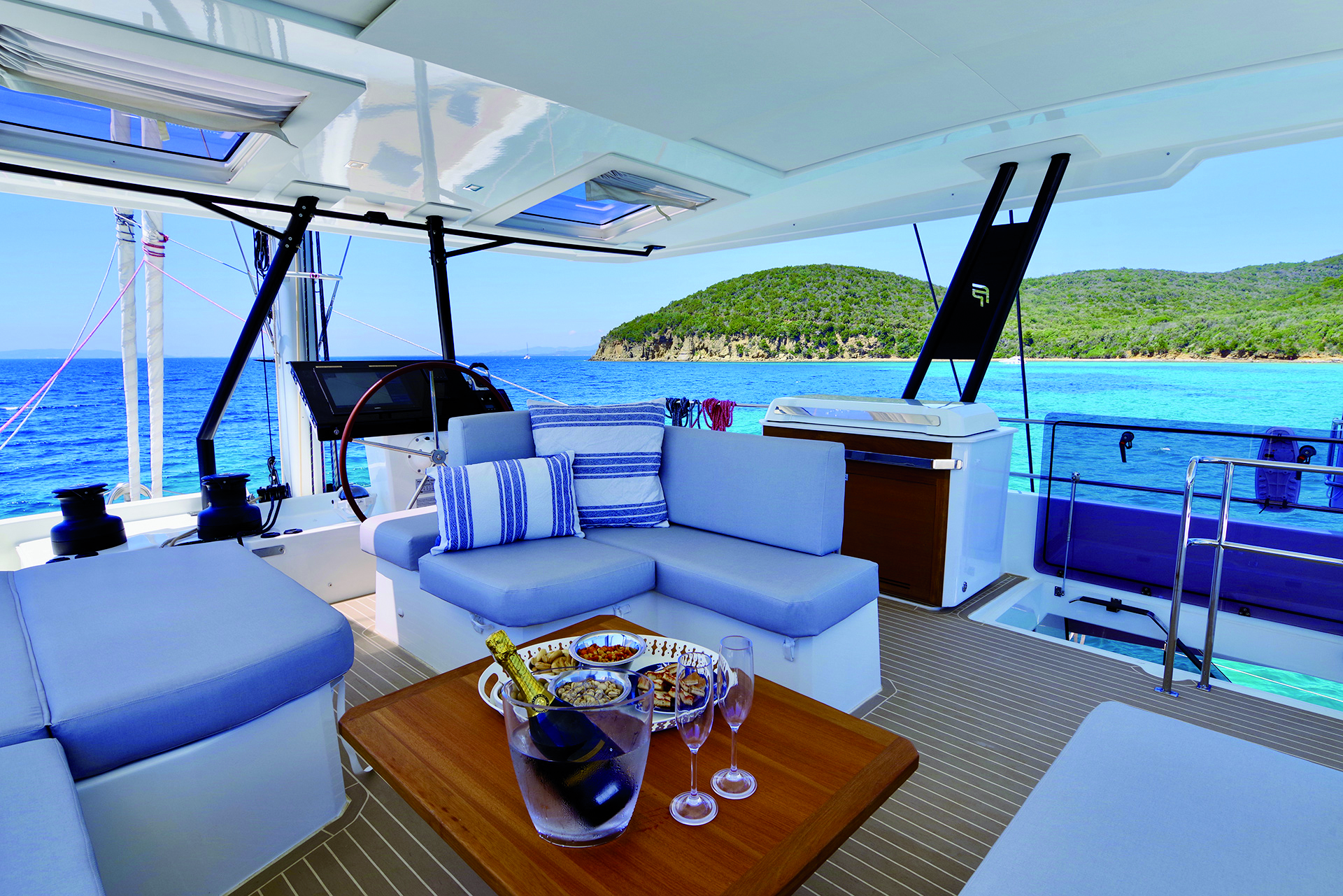 The Fountaine Pajot Samana 59 catamaran from the Aladar fleet is a state-of-the-art vessel that offers even more space and comfort for a truly exciting life aboard. Whether it’s cocktail hour or hosting a candlelight dinner.