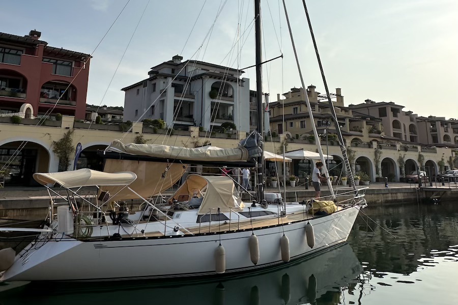 Desenzano, Lago di Garda, sede della FVD, Fraglia Vela Desenzano. Un classico del Lago replica il suo varo a 50 anni dalla prima volta. Si tratta della Goletta della Fraglia, uno schooner scuola in lega leggera, la prima in Italia