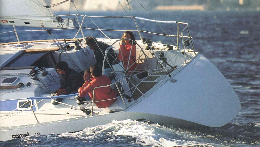 Vallicelli, in the mid-1980s, was undoubtedly the all-Italian star of sailing. After the successes of Brava, Filo da Torcere and the Azzurra adventure, he brought out another gem in 1985. In this case, for Comar and for the series. It was the Comet 12, an exceptional cruiser. Conceived as a cruising hull, with all the accoutrements that this provided, this 12 .6-meter turned out, in fact, to be not only excellent in this role, but also more than eager to race. Below the waterline, in fact, the firm knew how best to condense its experience in the racing world, resulting in a performance-cruiser of admirable workmanship. Today, it can make quite a few aficionados of the genre envious.