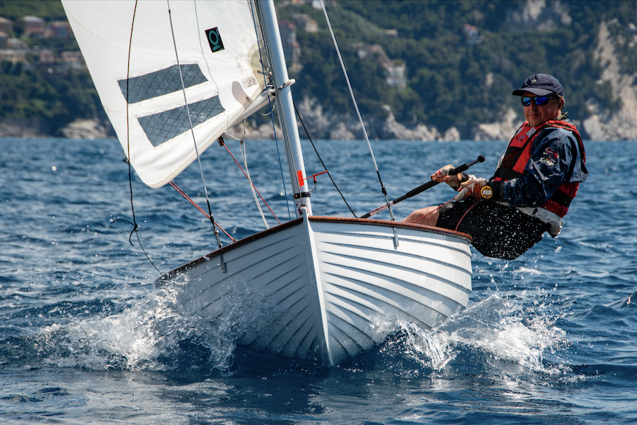 Ma nonostante siano trascorsi 112 anni, questa singolo a deriva mobile, il più longevo del mondo, resta un rompicapo, tutt’altro che veloce (la planata, questa sconosciuta!) e complicato da infinite microregolazioni, il cui effetto il più delle volte è l’opposto di quanto ci si aspetterebbe. Non è una barca da vento: oltre i 16 nodi (limite per le regate di classe) i timonieri entrano in modalità sopravvivenza. Sono proprio queste caratteristiche a fare del Dinghy la barca di elezione per i velisti “maturi”, quella particolare categoria di appassionati (al limite del masochismo) che dopo aver trascorso una vita su barche di ogni tipo, scelgono di sfidare se stessi prima ancora degli avversari in un gioco di equilibrismo tra tecnica, tattica, esperienza e pazienza.