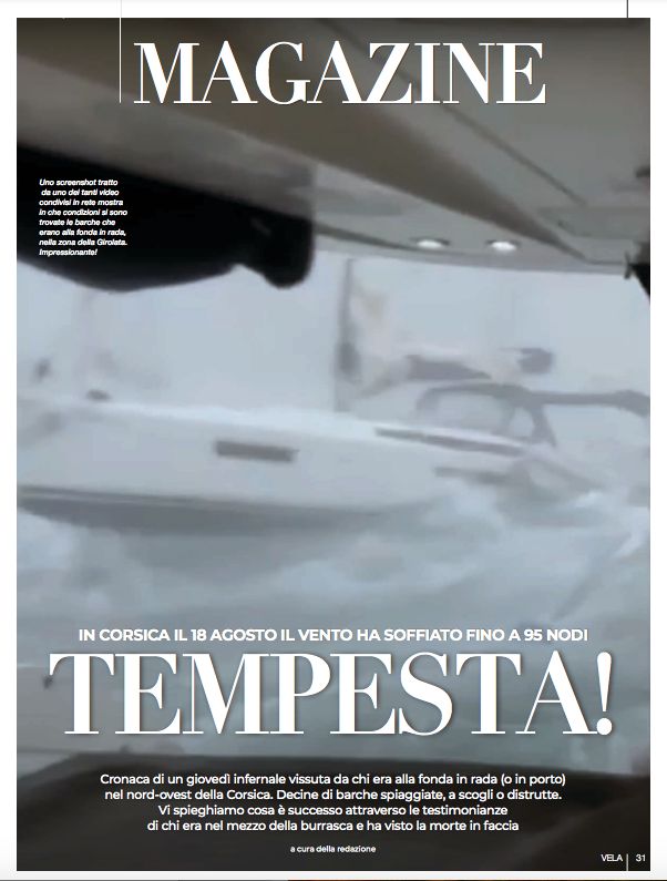 And now, let’s come to the testimonies of those who were in the midst of The first comes to us from Vincenzo Onorato, a shipowner and very passionate sailor (by the way, go read his article on page 112!) who was in Corsica cruising with his beloved Swan 65 Mascalzone Latino. “We were at the Cap Corse,” Onorato recounts. and we caught an incredible mistral blow: 95 knots of wind and sea like mountains. We had damage to rigging and sails, smashed boom, forestay, vang. Even a wave bent the stern pulpit. In addition, the wind disintegrated the mainsail and foresail, otherwise okay, but I have to put the boat back together. And to think that I had not gone out blindly, but looking carefully at the bulletins (I look at 6 of them) including Meteo France and they were giving 20 knots, maximum 30 knots“. More testimony comes to us from Roberto Beccari, a truly impressive account that, at its core, contains another chilling tale. We leave it in the present tense so as not to alter the excitement.”We had a transfer planned and it was skipped; it’s a big weather mess here in Corsica. We caught a thunderstorm this morning with gusts up to 50 knots. The anchor plowed and I’ll let you imagine the chaos. There were other less intense but still significant episodes. We hope this night will be kind; we are exhausted and determined. Then I received a request for help from a friend’s boat to track down some friends of hers, a family on a boat like us in Corsica. They had received no further news. I tried various ways and gave the number of the captain’s office in Girolata where they had last had contact. I am forwarding the message her friend sent about what happened, the same day we had our “problem.” “We are alive by a miracle…alive and unharmed (physically). We saw death in the face. Apparently they recorded wind 300 km/hour then everything blew. We escaped from the boat on the dinghy, the wind capsized us, we were rescued by Frenchmen on a catamaran then from there the Girolata captaincy took us all ashore. It was hell!!! The army and civil defense intervened. From the beach the helicopters rescued the injured and from the sea they then evacuated everyone. They took us to Porto, a nearby village where electricity and connections were down, but at least with water. We found a small hotel to stay in while we were waiting to figure out what to do. The boys are shocked, but we have to see if the boat is in any condition to move. The moorings have held, but they’ve been coming at us. There is still a weather alert. Let’s wait until it’s possible to come back and figure out the damage. We were about 50 boats and at least 20 sank or ended up smashed on the reef “.