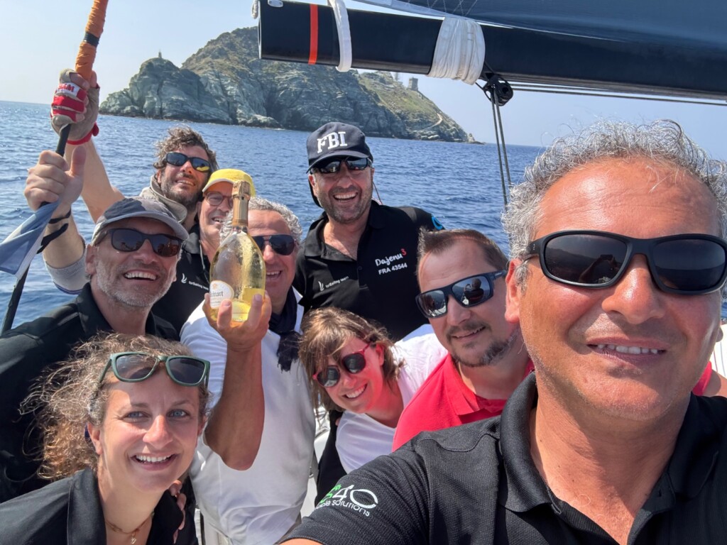 Dopo le costiere con “champagne conditions” a terra (Champagne Ruinart nel villaggio… visto quanto ne ho bevuto, mi sembra corretto citarlo) e in mare con la regata di domenica che ha toccato punte di oltre 30 nodi, mettendo a dura prova i timonieri più “da brezze e vermentino” come il sottoscritto.