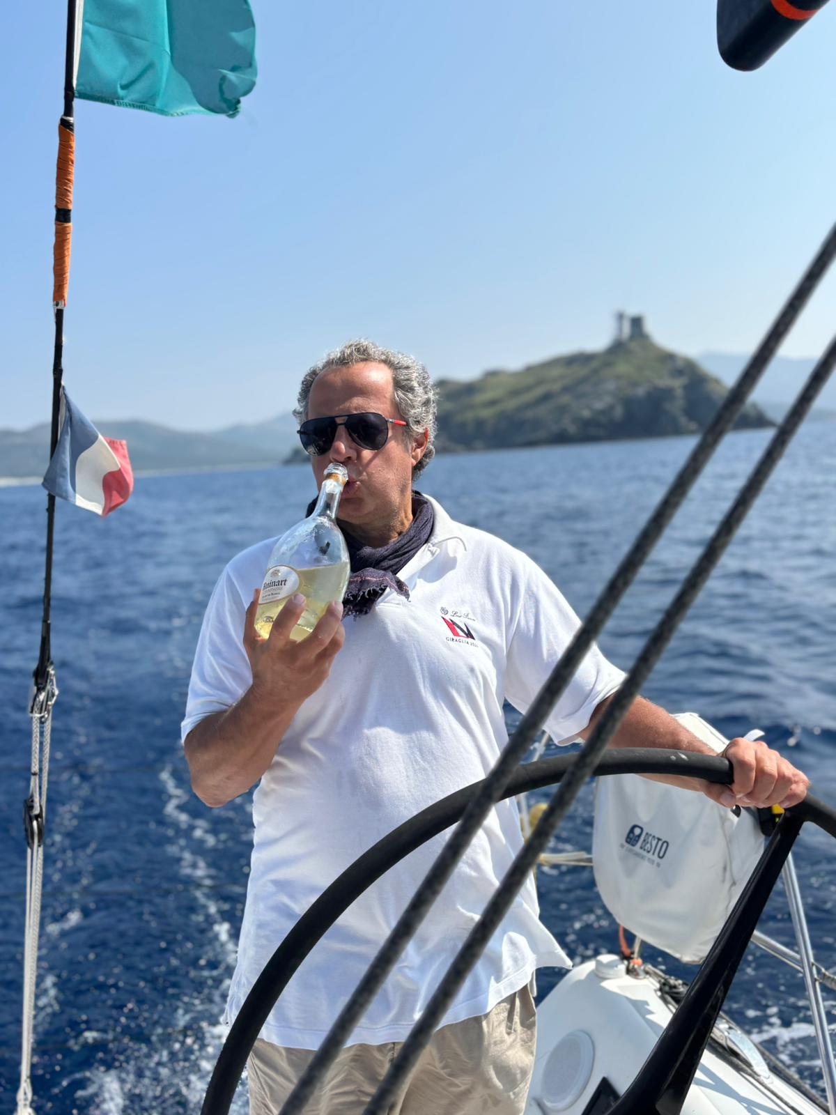 “Guarda, il mio armatore preferito è il Sig. Moretti, il Sig. Bellavista Sella & Mosca e quando vado con lui in barca e a terra abbiamo un parterre non indifferente, ma in regata si pensa a regatare e non a bere. Poi, una volta sbarcati, una happy hour dopo ci sta.”