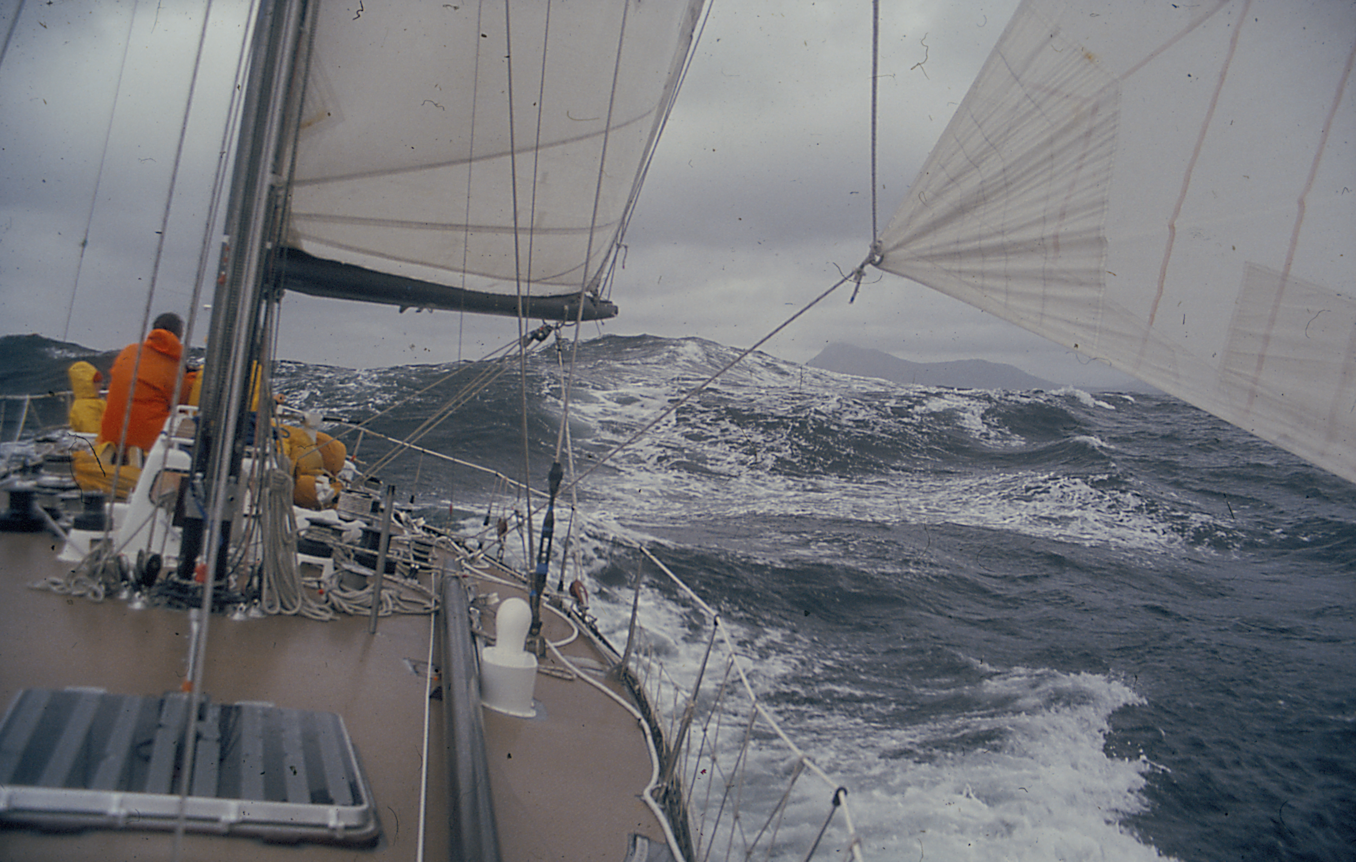 Sandro dopo quelle selvagge scorribande oceaniche a più non posso non aveva strambato fuori dalle vela ma bordeggiato nei pressi, difatti, scelta oculata da uomo che se ne intende davvero, divenne armatore di Resolute Salmon, one-tonner vincitore della One Ton Cup di Marsiglia nel 1977, splendido disegno spuntato fuori dalle matite di Britton Chance, yacht designer che definirei come punk-a-bestia dell’architettura navale, con cui vinse una Corsica per 2 con tanto di randa a testa quadra a modernizzare quel vetusto yacht.