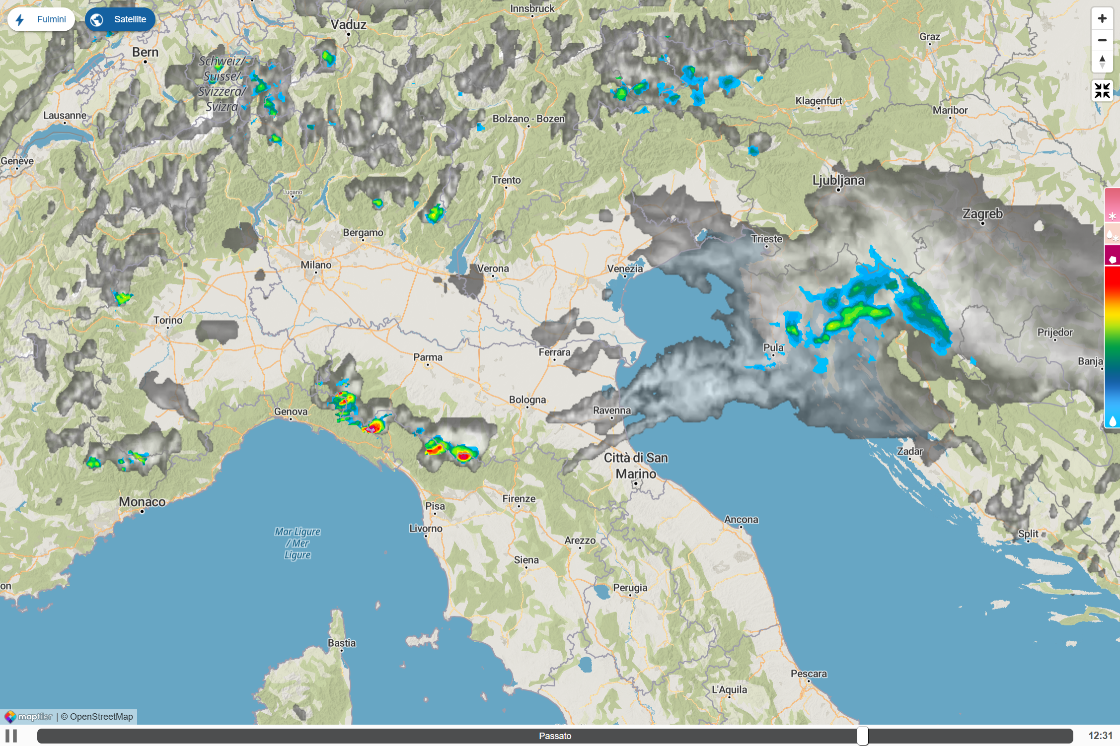 Le immagini satellitari sono utili per identificare coperture nuvolose, sistemi convettivi e loro evoluzione; l’utilizzo di radar meteo o compositi satellitari ci servono, invece, per valutare l’intensità e lo sviluppo verticale delle celle temporalesche. Altro strumento da prendere in considerazione sono le mappe delle fulminazioni, che individuano la presenza, l’intensità e lo spostamento dei temporali.