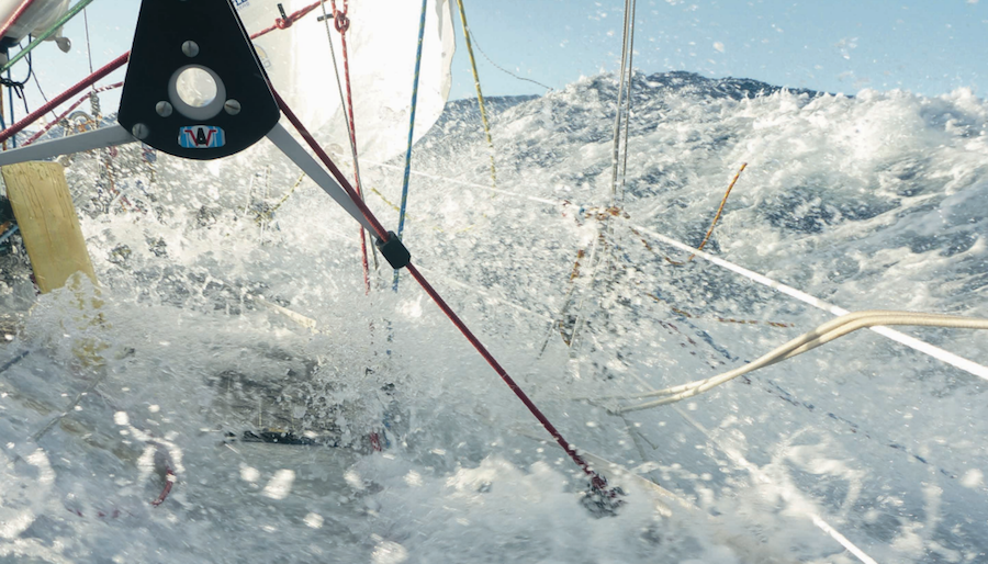 She paved the way for women’s professional sailing: she was the first and only woman to win the Route du Rhum in 1990 on the 60′ trimaran Groupe Pierre Premier.