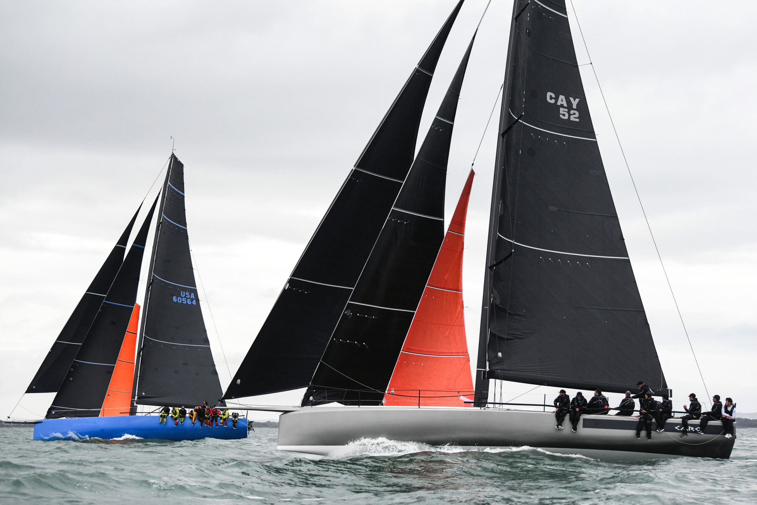 Take a look at the photo above of John Desmond’s TP52 Final Final. This is the Admiral’s Cup. But how many sails do these boats have? Are we back in the clipper era, one might wonder. . At the bow, at the head of the long delphiniera, is the “flying sail.” Next, going aft, is the traditional jib, in orange the “genoa staysail” (which then reminds us of the classic tormentor or a foresail) and the mainsail.