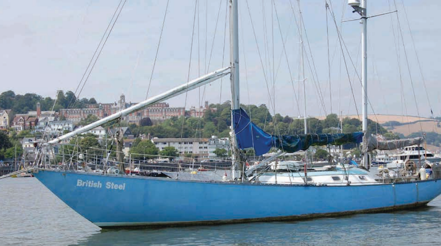 On the 18-meter ketch British Steel Scotsman Chay Blyth became the first person in the world, in 1971, to circumnavigate the globe solo non-stop westward against prevailing winds. For the time, the steel boat designed by Robert Clark was cutting-edge, designed for solo sailing and with futuristic electronics.