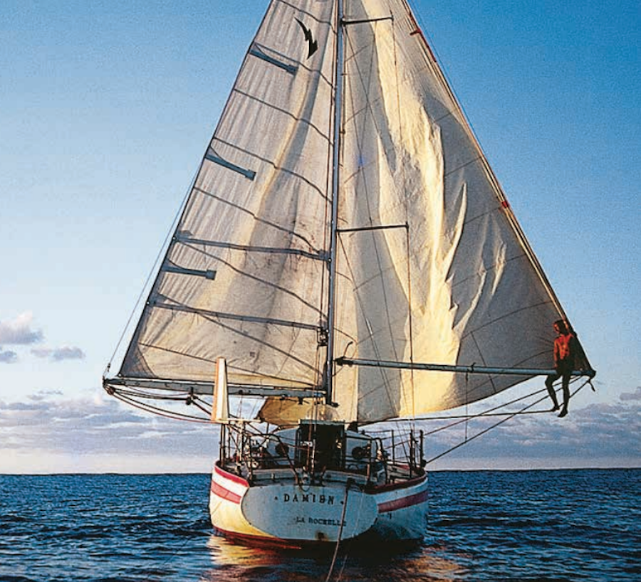 Salpa, to find peace with yourself. In pure 1968 spirit, Gerard Janichon and Jerome Poncet embarked on the Damien, a ten-meter self-built sloop, for a four-year round-the-world voyage. From the ice to the equator, they were among the first to prove that with daring, sacrifice, and unscrupulousness, dreams can be realized. The boat was declared a national monument.
