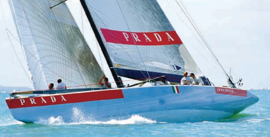 How many sleepless nights. First to rejoice at every victory the “Silver Bullett,” designed by German Frers and Doug Peterson, earned against the Americans in the Louis Vuitton Cup final. Then to despair when Russell Coutts and Peter Blake on Black Magic were thrashing us 5-0 in the Cup challenge. Luna Rossa by Patrizio Bertelli gave us adrenaline rushes. 23.8 meters long, its mast measured 32.5 meters. What a sight to see tactician Michele Ivaldi climb over it….