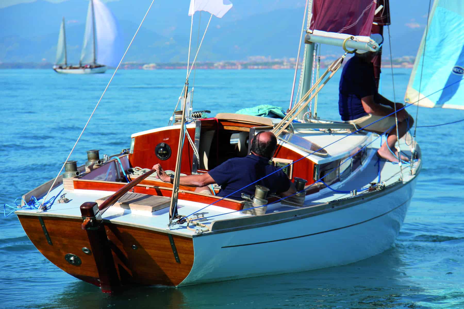 Washer was born in 1965, built by the J.G. Parnham & Sons shipyard in Emsworth, English Hampshire. She is a Bermudian sloop made of Honduran mahogany planking, on oak framework, and measures 6.90 meters at the waterline (LWL), for an overall length of 7.60 meters (LOA). From a design point of view, the design is inspired by that of the Nordic Folkboat-a small Swedish cabin cruiser designed in 1942 by Jac Iversen and Tord SundƩn (and circulated in as many as 3,500 examples)-but boasts substantial modifications, starting with the water lines, modified by none other than John Illingworth, who adapts its profiles to improve its seaworthiness and pitch on the wave, with a view to making it a hull suitable for the Junior Offshore Group, which was then racing between England, France and Spain. The planking also eventually turns out to be different from that of the Folkboat, caulked on the Rondetto instead of clinker, as is typical of the Nordic hull.