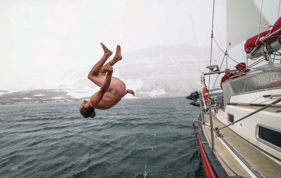 Sigurdur “Siggi” Jonnson, qui impegnato in un tuffo nelle gelide acque islandesi, dice: “Navigare per me significa essere libero di andare dove voglio, quando voglio, raggiungendo luoghi dove le strade obbligate non esistono”.