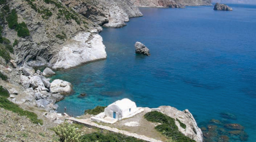 A natural setting of wild, lunar hills, turquoise or cobalt blue sea and wind (the meltemi, of course!) that blows with force and constancy. This is the atmosphere one experiences while sailing between the Cyclades Islands and the Dodecanese archipelago, in the center of the Aegean Sea. It is a landscape to whose ancient and unique charm it is difficult to remain immune, especially if you love sunny silences and a life in contact with the sea. So called because they are dispo ste in a sort of circle around the small, but very important already in Classical times as a commercial and religious center, island of Delos, the Cyclades include so many islands but each of them with characteristics that make it unique. Our journey then begins in Serifos, an authentic island still uninvaded by mass tourism, which even today retains its authentic appearance, with unpaved roads and the silence of the countryside. Those who arrive here by sailboat can dock at the small but organized marina of the capital of the same name to stock up among the stores of the delightful village or go straight to the discovery of the two coves that are really not to be missed. The first, located in the center of the south coast, is that of Ormos Koutala (37°07′ 80N – 24°27′ 30E), which also encloses a beautiful beach, while the second, located north of Cape Ak Kiklops, is that of Mega Livadhi (37°08′ 50N – 24°25′ 80E), delightful and sheltered by the meltemi. Going ashore then are several other beauties of Serifos, such as the so-called Cyclops’ throne, a strange rectangular-shaped construction in Livadi Bay, or the White Tower, built in the Hellenistic period and which was part of the east wing of Gria Castle. Finally, not to be missed is the 16th-century monastery fortress of Moni Taxiarchon. Famous for being an island full of desire for fun, Ios-our second stop in the Cyclades-is also home to fantastic, unspoiled natural scenery. And that’s not all: although Ios has experienced a significant development of beach tourism, its picturesque villages that dot the coast here and there retain their traditional nature. The best example is Chora, the main town: it is a village considered among the most beautiful in the Cyclades, with its white houses and blue roofs, cobbled streets that weave into a labyrinth and characteristic windmills. Those arriving here by boat, however, should begin their exploration of the island from the sea, discovering in particular three well-sheltered coves. In the west is that of Ormos Milopotamou (36°42′ 70N – 25°18′ 50E), in which no less than four coves suitable for dropping anchor and swimming branch off. Then to the east is Ormos Tris Klises (36°40′ 00N – 25°23′ 30E), an inlet with very blue sea and good protection from the meltemi. Finally, on the south coast there is Ormos Manganari (36°39′ 00N – 25°22′ 25E), which closes the very famous and picturesque Manganari beach ashore, surrounded by lush nature. Other beaches worth visiting are those of Mylopotas, about 1 km long with golden sand and turquoise waters, and Agia Theodoti, which owes its name to the small chapel above it and is totally surrounded by trees.