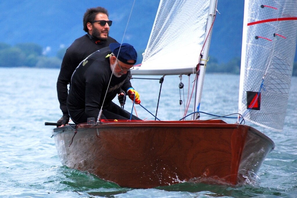 Let’s start with the smallest of the registered boats, Let the Motherfuc*er Burn, none other than a Vaurien wooden, a small (4.08 meters) jewel from 1972. Born in the early 1970s, this small Vaurien was salvaged in a total state of neglect and, through painstaking philological restoration, has returned to enjoy new life. Made entirely of mahogany () she is now also a well-deserving boat of the Vaurien Class. Her recovery is documented, and took over 100 days of work….