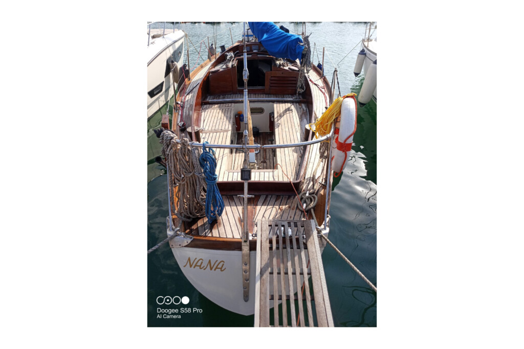 Nana, as far as we know, was born in 1968, launched by Carlini Shipyards and designed by the New York firm Sparkman & Stephens. She is 10.68 meters long, is made of mahogany planking with laminated laminated frames, has trim tabs and, it would seem, is a twin of the better-known Heron. In 2023 she was purchased in Varazze by the current owners, who have carried out her restoration. Before then, however, darkness. And now, with the restoration complete, the duo would like to know more: if you have any information about it, please do not hesitate to reply to us via the comments or by writing to cl*********@***************la.com