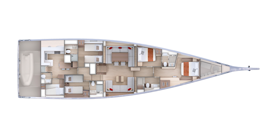 Below the waterline, the GS Plus 80 Performance features a fixed keel with a draft of 3.95 meters and an advanced single rudder that ensures precise steering and great responsiveness. Alternatively, a double rudder configuration is available, allowing the yacht to be further adapted to the owner’s preferred sailing scenarios.