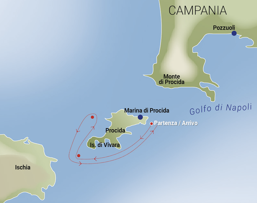 The 10-mile course will start in front of the D’Avalos Palace, continue to Marina di Corricella, coast the island to Punta Serra and end again in front of the D’Avalos Palace. Procida offers perfect weather and authentic scenery in late September, without the summer crowds and with the opportunity to experience the island under the banner of sailing, seafaring culture and local traditions, culminating with the celebrations of the patron saint St. Michael, for those who can stay longer, on Monday, September 29.