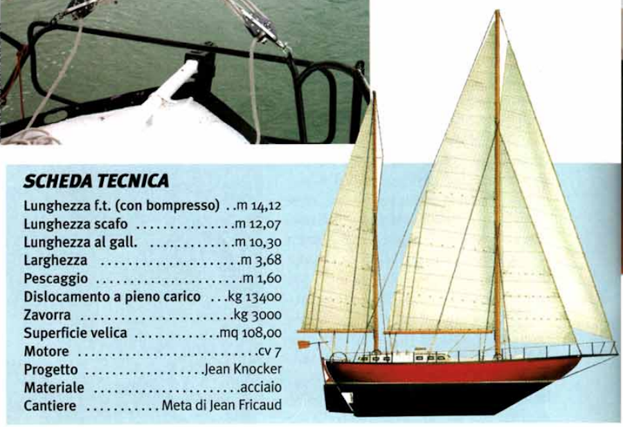 It was a great demonstration of solidarity and love for the sea: so was that of Jean Knocker, the designer, who freely offered to bring Bernard’s ideas and sketches back into architecturally correct form. And so was that of Fricaud, who at the sole living cost of iron sheets and welding rods built in just three months the Joshua. Both, reading Moitessier ‘s book Cape Horn to Sail, had been fascinated by the character and his adventures. The operation, in fact, proved cost-effective: of specimens of the Joshua as many as 70 were made, some of them of recent construction. Looking at this Norwegian stern-rigged ketch, the only one according to Bernard capable of “dividing, directing and cushioning to a large extent the violent thrust caused by a breakaway crest in a breakaway gait, “ I am struck by the height of the very low freeboards, a mere 75 cm amidships. Like a tugboat, the hull goes all the way underwater with a star-shaped long keel hull ending in the outer rudder blade. The mighty bow houses a tubular bowsprit a couple of meters long, supported by two stays and winds and reefs made from 12-gauge chains. In resting my foot on the foresail, the boat does not even feel my weight. Rock. I climb over the webbing, also made with chains and painted black because, as Moitessier claimed, they are more visible at night. And I finally climb aboard. Welcoming me is the current skipper of the Joshua. Jean Ives Gallet, while the two co-skippers Laurent Cochelin and Iohannes Raymond are already at work rigging the sails. “We have to leave right away,” Jean Ives tells me, “the deck opens soon and the tide is good now.” Incidentally, the tide today has a 5-meter excursion, so leaving and returning are dependent on its timing.