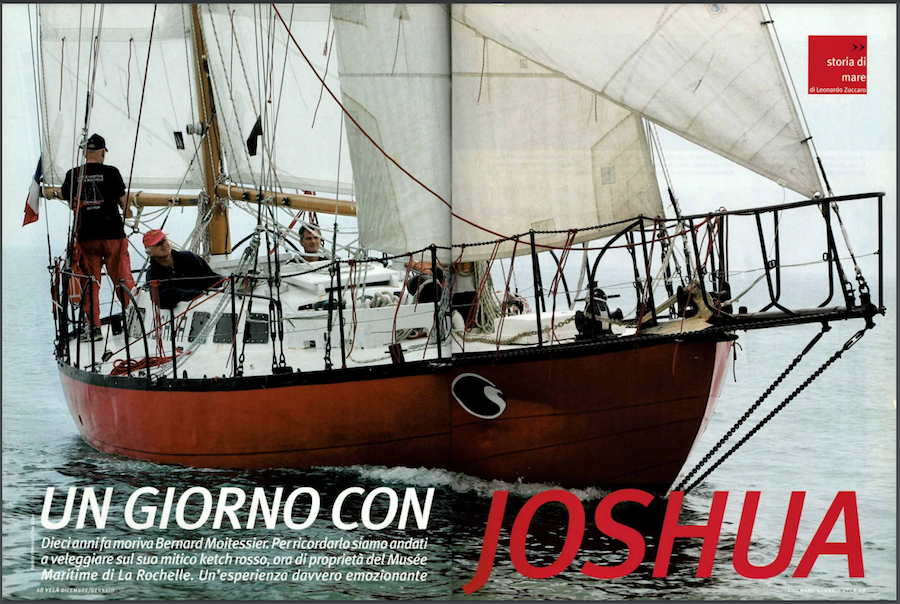 We sailed on Joshua, the legendary boat in which Bernard Moitessier in 1968 abandoned the first solo round-the-world race to reach Tahiti and become sailing’s greatest poet. Joshua is one of the most absurd and surprising boats in history. Let’s get on board together.
