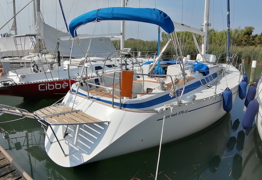 Con il finire degli anni ‘80 nasce un classico firmato Comar. È il Comet 375, disegnato dalle sapienti mani di Finot e Peterson. Linee e design sono eccellenti, qualità e passo pure. Sarà un successo clamoroso, valso ben 112 esemplari costruiti. Lungo 11.50 metri, largo 3,70, il modello in vendita risale al 1989 e vanta non pochi optional a bordo.