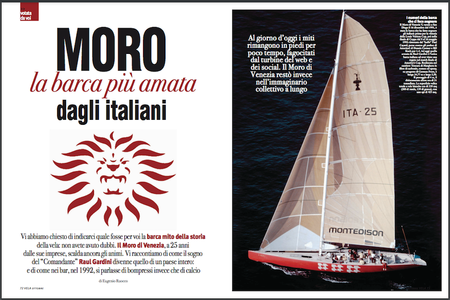 Non avete avuto dubbi. Non c’è Azzurra né Luna Rossa che tenga. Il Moro di Venezia, a 25 anni dalla storica vittoria della Louis Vuitton Cup di San Diego e dalla finalissima di Coppa contro America3, è la barca che vi suscita le emozioni più grandi. E che avete eletto come “più mitica di tutte” nel sondaggio che vi abbiamo proposto sul sito de Il Giornale della Vela. Mentiremmo se dicessimo che il risultato ci ha sorpresi. La saga del Moro è ancora vivissima nel nostro cuore. Grazie a Raul Gardini, l’imprenditore romagnolo il cui sogno (quello di strappare la “vecchia brocca” agli americani) divenne quello di tutti gli italiani. Che si scoprirono all’improvviso velisti, che mandarono i propri figli alle scuole di vela, che sostituirono nei loro discorsi da bar gol e traversoni con bompressi e strambate. Grazie al gruppo affiatato e competente che il Comandante (uno dei soprannomi affibbiati al tycoon ravennate) seppe creare e che, al giorno d’oggi, influenza la vela mondiale in ogni sua branca: velai (Guido Cavalazzi, Davide Innocenti), progettisti e tecnici (German Frers, Claudio Maletto, Roberto Biscontini, Giovanni Belgrano solo per citarne alcuni), regatanti (Paul Cayard, Andrea Mura, Cico Rapetti, Lorenzo Mazza, Tommaso Chieffi), dirigenti (Enrico Chieffi, Marco Cornacchia), professionisti del mare (Max Procopio, Dudi Coletti). Grazie alle barche gloriose che portano questo nome sulla poppa, otto per la precisione (tre maxi e cinque IACC – International America’s Cup Class), che ancora oggi navigano sparse per i mari del mondo.