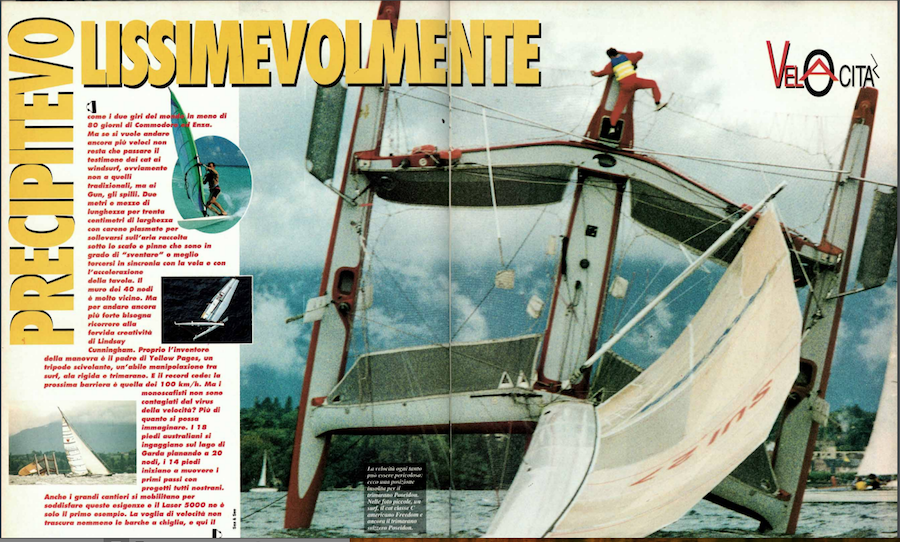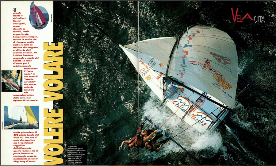 Nasce a metà degli anni ’90 la febbre della ricerca della massima velocità e vela. Non sono ancora arrivati i tempi dei foil ma le barche cercano di volare sull’acqua. Ecco come e con quali barche si cercava di raggiungere il volo sull’acqua.