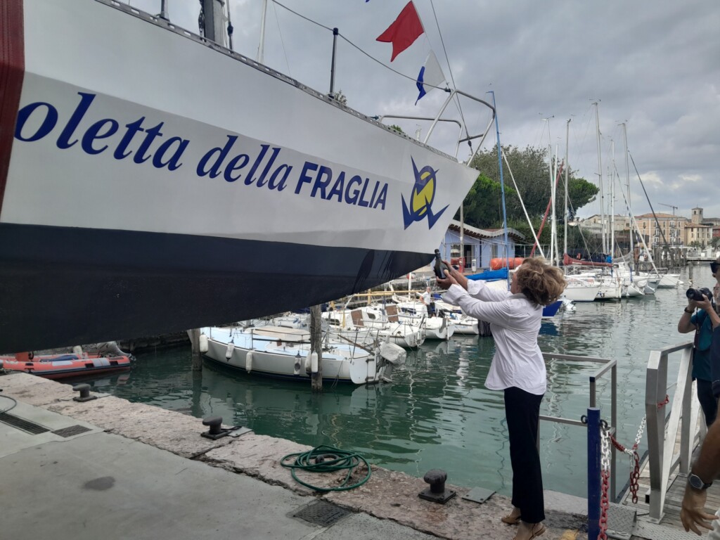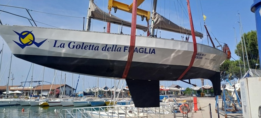 Desenzano, Lake Garda, home of the FVD, Fraglia Vela Desenzano. A Lake classic replicates its launch 50 years after the first time. It is the Fraglia schooner, a light alloy school schooner, the first in Italy to ever be built for this purpose. But this is not a salvage, but rather a celebratory launch for the 50th anniversary of her birth. The schooner, in fact, except for necessary maintenance, has never stopped sailing and serving the club and will continue to do so for a long time to come.