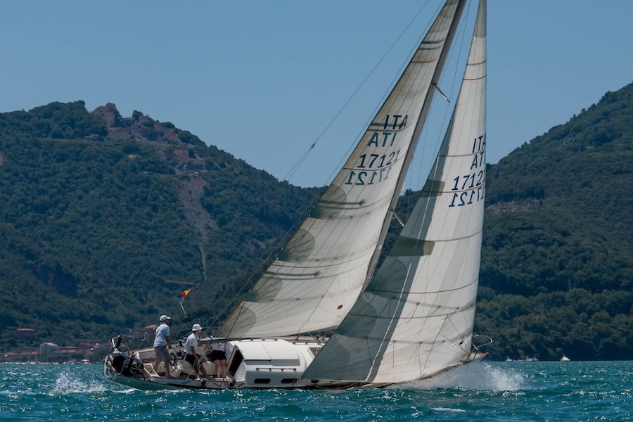 Procediamo in ordine cronologico, per varo, e partiamo con un grande successo italiano di fine anni ‘60. È Nelly, varata nel 1967 su progetto di Sparkman & Stephens, un Benello Gaia. Nello specifico, Nelly nacque su commissione di Holm, allora noto velista internazionale, che con questa regatò non poco sia in Mediterraneo che in Oceano. Nonostante le linee eleganti e classicheggianti, Nelly fu infatti un cruiser-racer dal buon pedigree, raccogliendo vittorie anche dopo il passaggio di proprietà del 1980, attuale ancor oggi. Per approfondimenti, potrete trovare la sua scheda nel Registro Ufficiale del Classic Boat Club