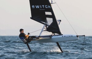 Lungo 3,9 m e largo (con le “ali”) 2,25, ultraleggero, full-carbon (29 kg il peso della piattaforma) lo Switch (immagine in alto) ha vele Quantum Sails ed è in grado di volare a 30 nodi di velocità.