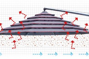 Il vento scorre tra le falde della capote che perciò non si oppone alla sua spinta. Ciò si traduce in una maggiore stabilità dell’ombrellone. L’aria calda che si forma sotto la capote è libera di uscire permettendo così una migliore ventilazione.