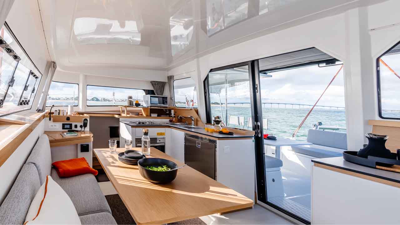 L’Excess 11 ha sfruttato l’esperienza dei catamarani più grandi, senza rinunciare alle caratteristiche di comfort necessarie per piacevoli crociere. Gli interni firmati Nauta Design offrono un volume degno di una barca più grande, sia nel quadrato sia nelle cabine, per esempio è dotato di un letto di 2×2 metri nella cabina armatoriale e bagni con box doccia separato! All’esterno, propone il comfort e lo spazio per la convivialità nell’ampio pozzetto sgombro e una doppia timoneria che permette piacevoli sensazioni al timone oltre ad un contatto diretto con il resto dell’equipaggio.
